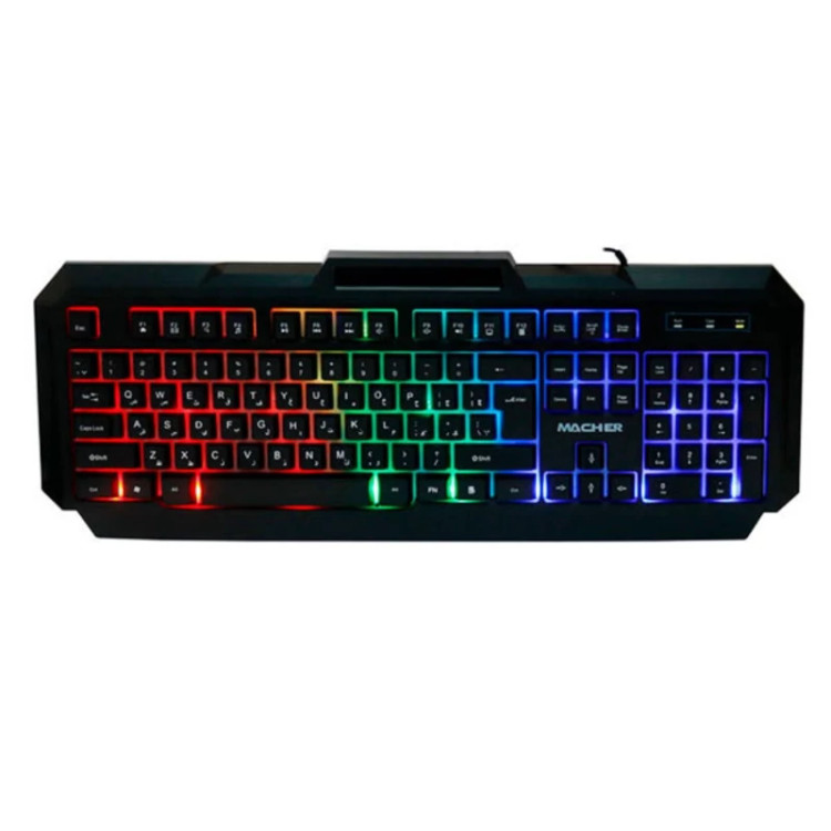 کیبورد RGB مچر مدل MR-365 دارای نور پس زمینه می باشد و در محیط های تاریک به راحتی می توانید از آن استفاده کنید. دکمه های کیبورد MACHER MR-365 سیلیکونی است و به طور ویژه ای تنظیم شده است. دکمه ها از نوع مکانیکی و دارای طول عمر 10 میلیون کلیک به ازای هر کلید می باشد. کیبورد های مکانیکی یا گیمینگ از لحاظ ساختار به گونه ای طراحی شده اند که بهترین تجربه بازی کردن را عرضه کنند. این کیبوردها علاوه بر انجام فرامین چند رسانه ای، توانایی انجام قابلیت های بهتری برای بازی کردن دارند. از جمله این قابلیت ها می توان به کلید های بلند و بزرگ برای راحت تر پیدا کردن کلید ها در بازی، داشتن نور پس زمینه در چندین رنگ اشاره کرد. با همه این ویژگی ها برترین تفاوت کیبورد های گیمینگ حساسیت بالا و دقت بالای کلید های آنها است. در کیبرد های مکانیکی نیازی نیست که لزوما کلید را تا انتها و گاهی محکم فشار دهید. عمل کلید به عنوان مثال در موقعیت 2 میلی متری انجام می شود و فشار دادن بیشتر، صرفا برای اطمینان از کارکرد کلید است. مزیت اصلی کیبوردهای مکانیکی، حساسیت بیشتر و دوام بالاتر آنها است.