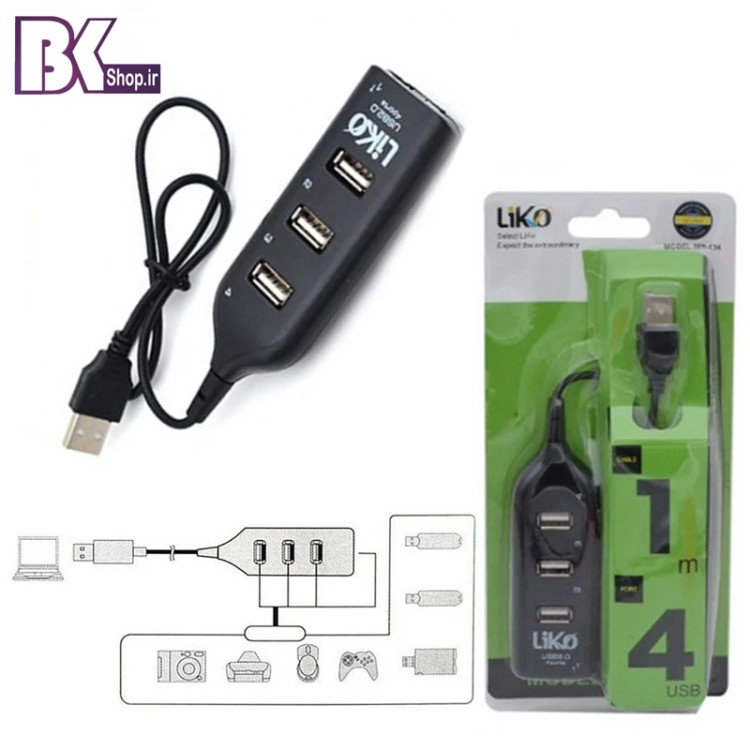 هاب 4 پورت USB2.0 لیکو مدل MR-134 دارای 4 پورت است که بصورت همزمان می توانید از هر چهار پورت استفاده کنید و به لپ تاپ و کامپیوتر وصل شوید. هاب 4 پورت لیکو با یک کابل به طول 0.3 متر و بدنه ای از جنس پلاستیک تولید شده است و به دوربین، پرینتر، دسته بازی، ماوس، رم ریدر، لپ تاپ و کامپیوتر، MP3/4 متصل می شود. هاب 4 پورت USB 2.0 لیکو مدل mr-134، مجهز به 4 درگاه ورودی USB 2.0 سازگار با اکثر سیستم عامل ها می باشد. این هاب اطلاعات را با سرعت 480Mbps انتقال داده و دارای قابلیت اتصال سریع Plug and play و بدون نیاز به نصب درایور می باشد.