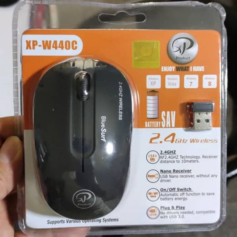 ماوس بی سیم ایکس پی-پروداکت مدل XP-W440 ماوس بی سیم ایکس پی-پروداکت مدل XP-W440 محصولی است که از طریق دانگل USB به رایانه شما متصل میشود. به یاری پشتیبانی از فرکانس 2.4 گیگاهرتزی، این ماوس میتواند از فاصله 10 متری از رایانه شما به کنترل اشاره گر رایانه بپردازد. ماوس بی سیم XP-W440 درابعاد بسیار مناسبی طراحی شده است. طوریکه هنگام استفاده از آن هیچگاه احساس خستگی نخواهید کرد. جهت خرید عمده در قسمت گفتگو با غرفه دار پیام بگذارید.