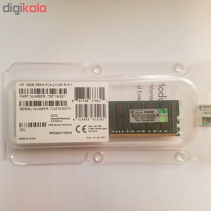 رم سرور DDR4 دوکاناله 2133 مگاهرتز CL15 اچ پی مدل PN:726719-B21 ظرفیت 16 گیگابایت