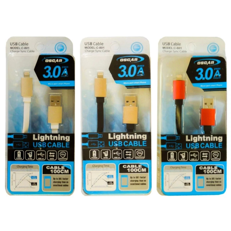 کابل 1 متری لایتنینگ (آیفونی) به شما این امکان را میدهد که بدون محدودیت مکان گوشی همراهتان در هنگام شارژ استفاده کنید.حتی اگر کابل اورجینال خود را دارید میتوانید از این کابل برای یدک استفاده کنیدتا کابل اصلیتان آسیب کمتری ببیند.کابل شارژ لایتنینگ OSCAR دارای جنس بسیار محکمی می باشد که در مدت طولانی ماندگاری دارد.